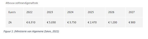 Het kabinet wil de afbouw van de zelfstandigenaftrek versnellen van € 6.310 in 2022 naar € 5.030 in 2023 tot € 900 in 2027. Met deze maatregel wil het kabinet de verschillen in fiscale behandeling tussen werknemers en zelfstandigen verkleinen.